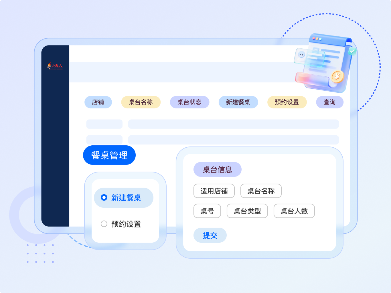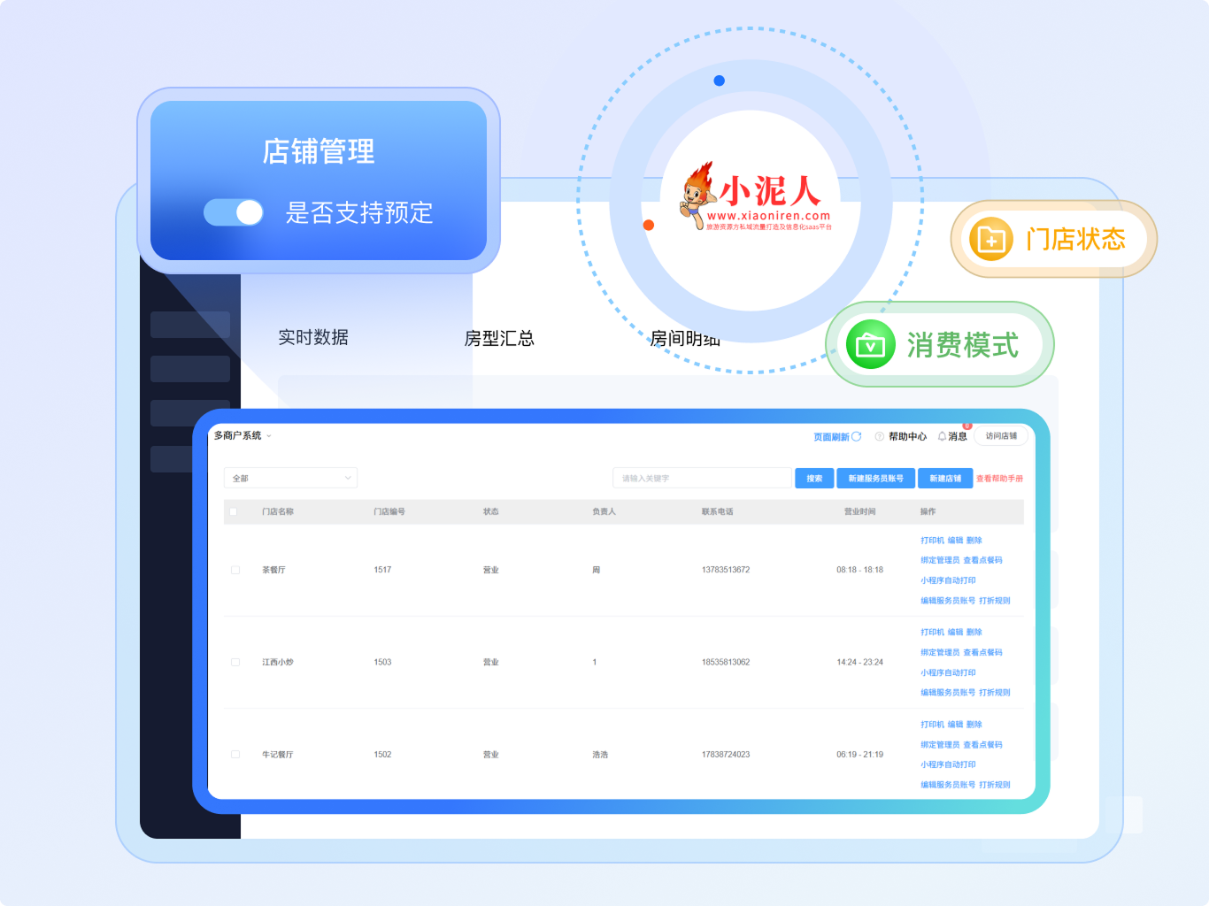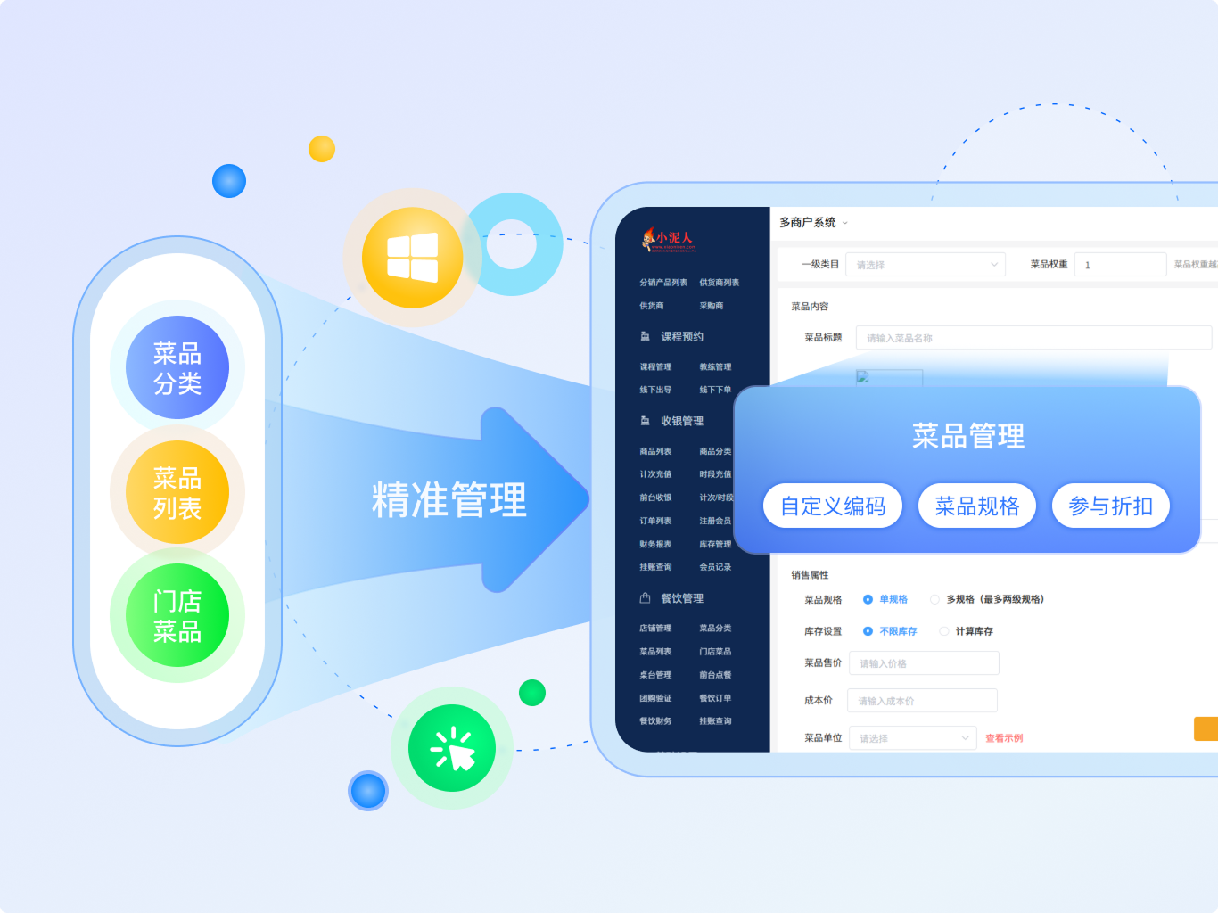 小泥人餐饮管理系统集门店、菜品、会员、OTA、桌台与订单管理于一体,针对多店运营难题,提供集中管控与灵活配置功能,实现总部与门店的高效协同,确保运营标准统一