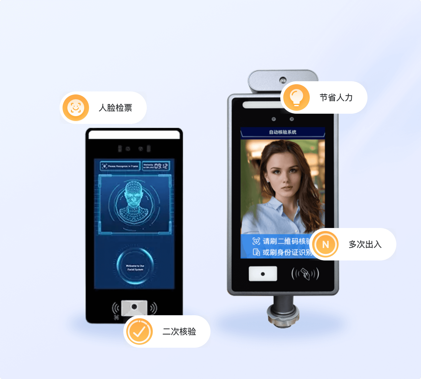 精准识别、多模态验票、超大人脸库、高效通行