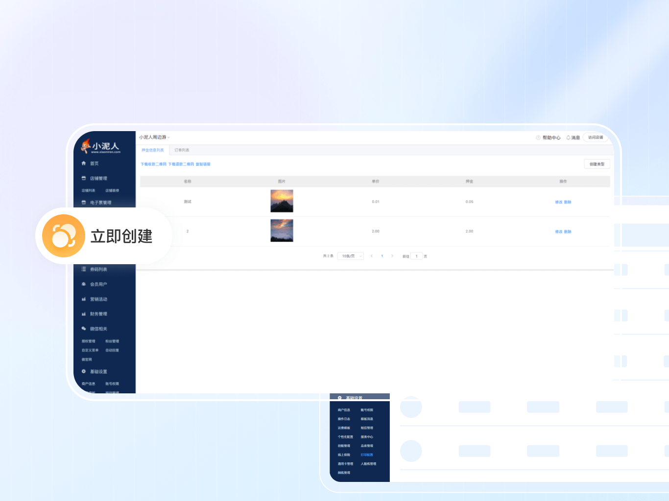 小泥人押金系统支持单个/多个产品生成押金二维码